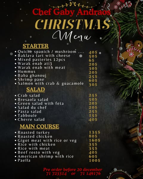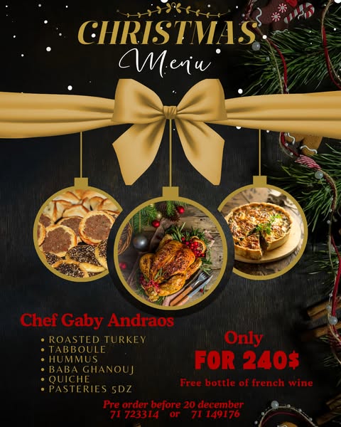 搜索关键词 Christmas dinner catering, Christmas dinner delivery, Festive season meals, holiday dinner deals, Christmas party food, Convenient Christmas dinner, Lebanese Christmas Catering, Affordable Christmas dinner, Family Christmas dinner, Christmas dinner menu优势 Convenience,Festive Meal,Easy Ordering