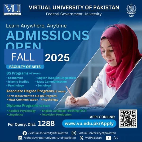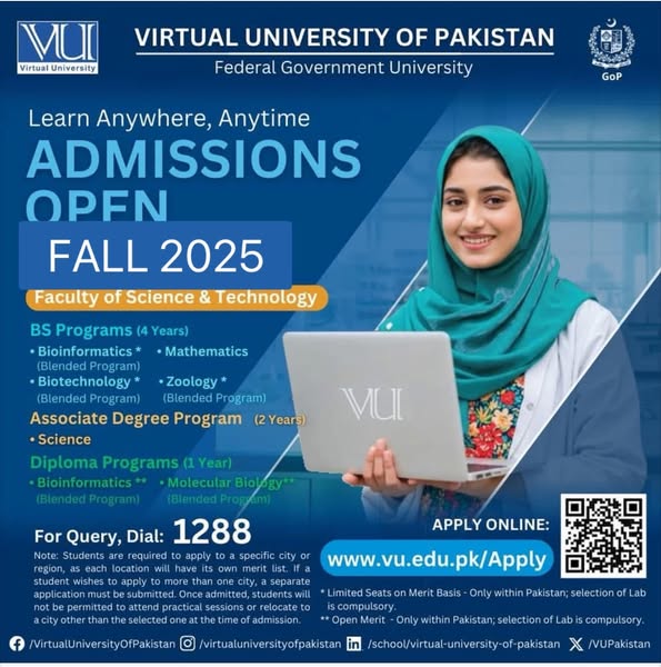 📚“ Unlock Your Future with” #Virtual University of Pakistan! #FALL 2025 Admissions Open Now!!