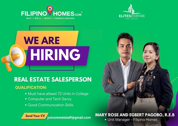 #Filipinohomes #TeamFHElitesEmpire #RealEstateSalesperson #JobOpportunities #RealEstateJob #Hiring #Hiring2025 #LookingFor #Job #Career #Careeropportunity #NewWork #UnlimitedIncome