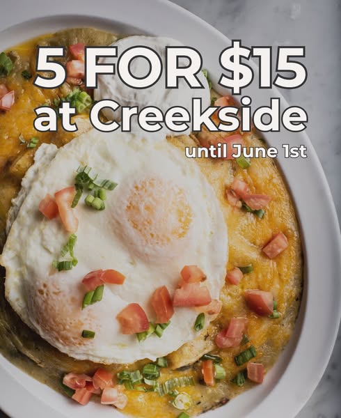 🌄 Slow Season, Big Flavor 🌮 Less hustle, more hash. 🌿 During mud season, we’re serving up local gratitude with our 5 for $15 special, now through June 1. Choose from sweet, savory, and everything in between: 🥞 Fourteener 🌮 Rancheros 🥩 Corned Beef Hash 🍔 Express Burger 🐔 Fried Chicken Sammie It’s the perfect time to brunch without the bustle. We saved you a seat. 📆 Ends June 1 #SteamboatMudSeason #CreeksideEats #CreeksideCafe #LocalsOnlyVibes #SpringComfortFood #MountainTownEats #BrunchSeason #BestBrunchSpots #CreeksideSpecials #SteamboatFoodScene