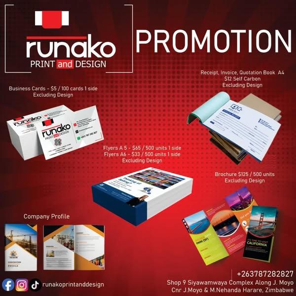 *Flyers, business cards, brochures, posters, letterheads and company profile