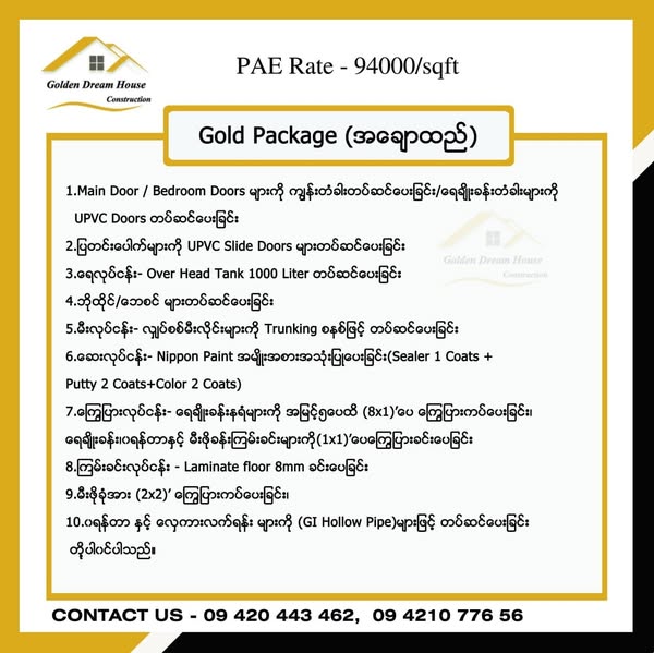 အချောထည် အလှဆင်သည်အထိ တစ်နေရာထဲမှာအပြီးအစီး တည်ဆောက်ချင်တဲ့ လူကြီးမင်းတို့အတွက် 𝗚𝗗𝗛 ရဲ့ 𝗣𝗔𝗘 𝗥𝗮𝘁𝗲 လေးတွေပါခင်ဗျ