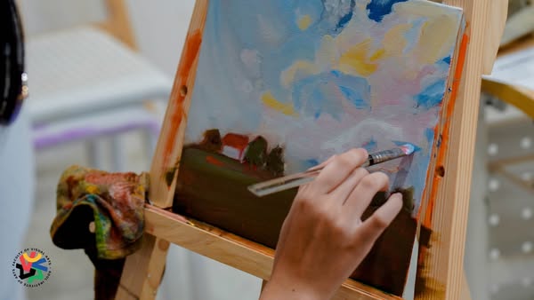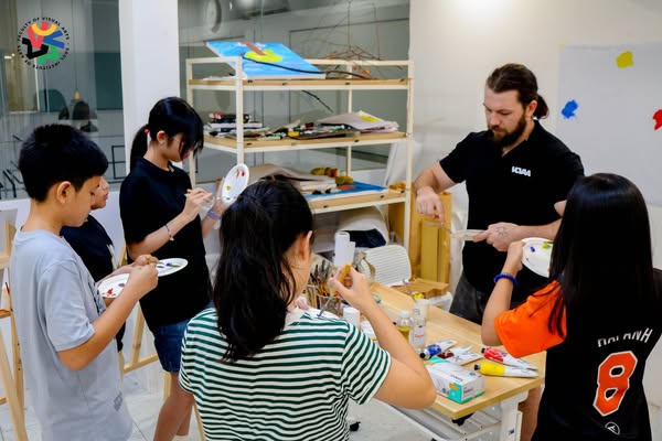✅Giới thiệu kỹ thuật cơ bản: Thầy Ruairi hướng dẫn quy trình vẽ tranh sơn dầu, bao gồm từ khâu chuẩn bị chất liệu đến cách pha trộn màu và tạo lớp nền.
