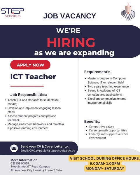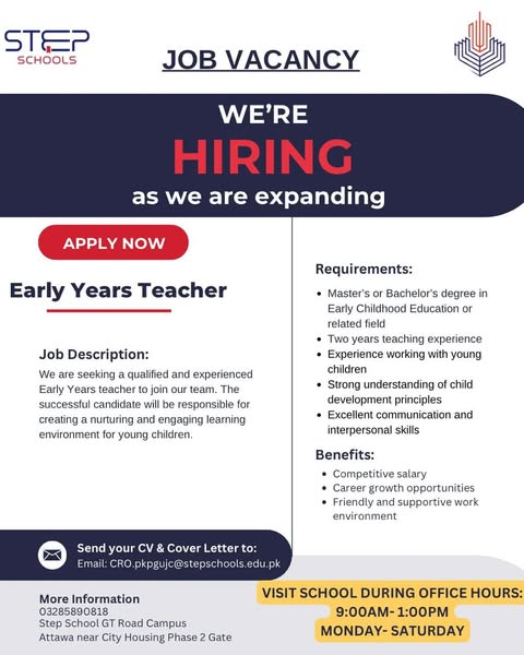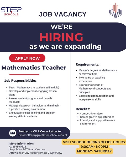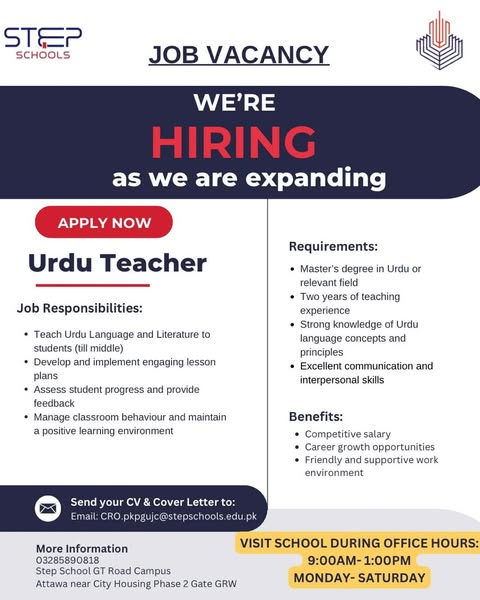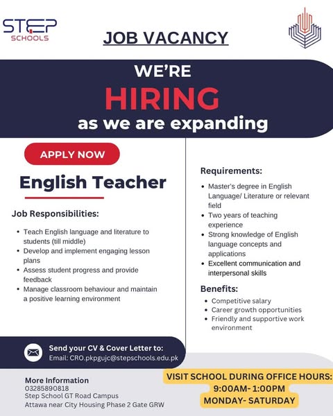 #STEPHiring #JoinSTEP #GujranwalaJobs #EducationCareers #STEPGTRoadCampus #WeAreExpanding #ApplyNow