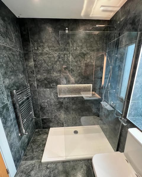 Transform your bathroom into a spa-like retreat with warm, natural stone finishes. Serving Dublin & all Leinster—limited bookings available!