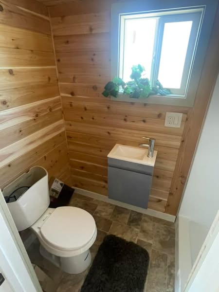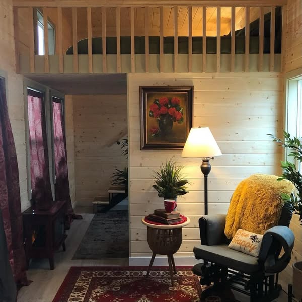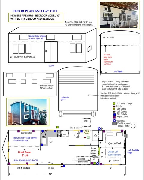 Both of these models are finished with extremely high-quality materials like tongue/groove spruce & tongue/groove Cedar in the bathroom. Upgraded waterproof plank flooring. Two separate lofts with plenty of ground floor room to have a bedroom or bed area on the ground floor. Each unit also has a sunroom- A separate spacious living area with tons of windows and lots of light.