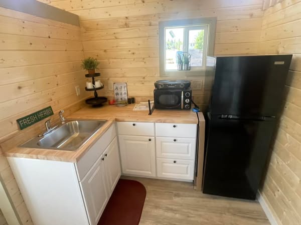 Our models are "ready to live in" designs ! Just hook up the utilities like you would an RV at a campground. ( pictures below show various units of our Metro Retro and our Big Little Bungalow.)