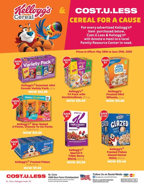 搜索关键词 bulk savings, summer deals, grocery sale, community support, exclusive brands, fresh produce, storm season essentials, kellogg donation, no membership needed, cost u less优势 省钱机会,支持社区,独家品牌商品,新鲜农产品优惠,无需会员