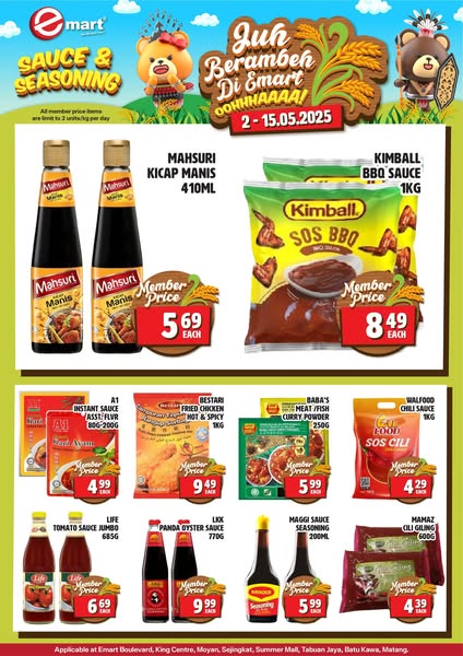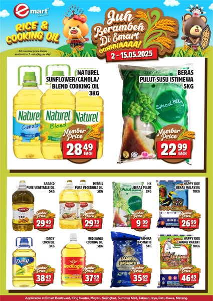 📍 Emart Boulevard Kuching, Emart King Centre, Emart Moyan, Emart Sejingkat, Emart Summer Mall, Emart Tabuan Jaya 24 Hours, Emart Batu Kawa 24 Hours & Emart Matang outlets.