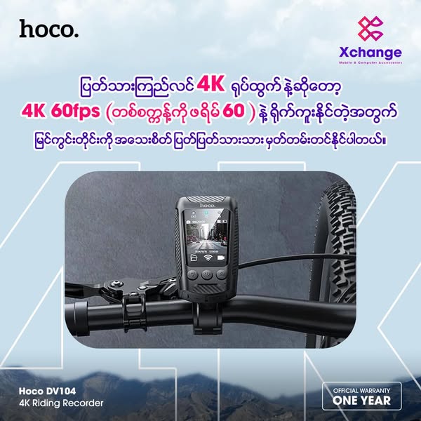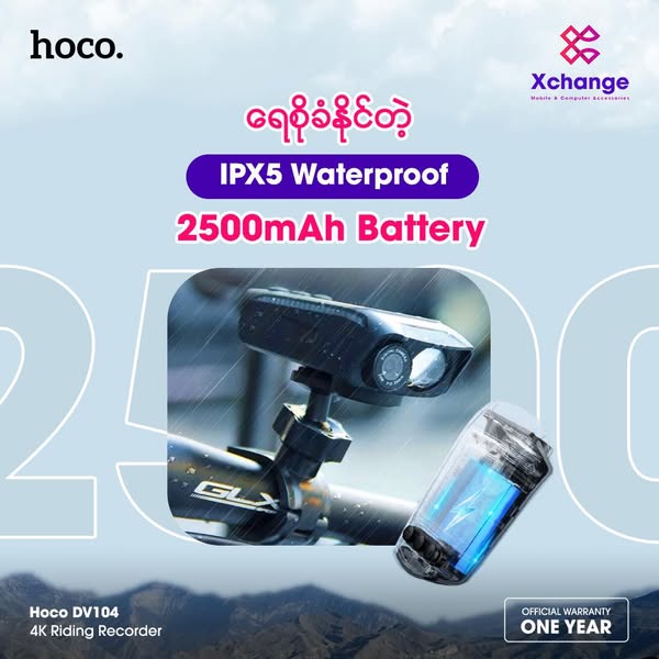 搜索关键词 4K riding recorder, bicycle action camera, waterproof action camera, long battery action camera, Hoco DV104 review, action camera Myanmar, cycling recorder, Xchange mobile shop, EIS action camera, affordable action camera优势 4K 60fps Video Recording,EIS (Electronic Image Stabilization),IPX5 Waterproof,2500mAh Battery,Can be used as bicycle light/flashlight