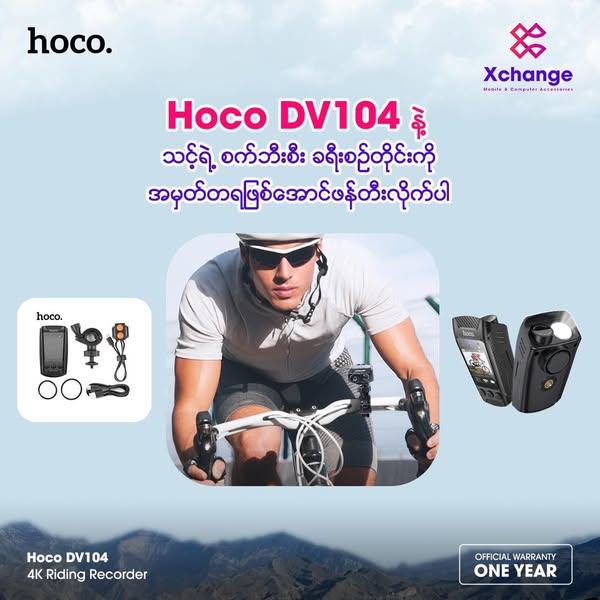 စက်ဘီးစီးရင်း လှပတဲ့မြင်ကွင်းတွေကို မှတ်တမ်းတင်ချင်သူတွေ၊ စွန့်စားခန်းတွေကို 4K ရုပ်ထွက်နဲ့ ရိုက်ကူးချင်သူတွေအတွက် Hoco DV104 4K Riding Recorder လေး ရောက်ရှိလာပါပြီ။