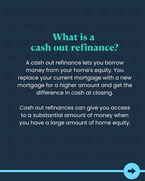 Get access to funds to pay for unexpected or large expenses you may have by getting a cash out refinance with us! 🏠 💰 Swipe to read more about them and how much cash you can get from the equity you have in your home. ⤵️