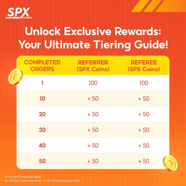 搜索关键词 SPX Express referral, delivery service rewards, referral program, earn SPX Coins, reliable delivery, share referral link, sign up and book, express shipping, logistics promotion, SPX referral code优势 Earn rewards by referring new users,Easy to share referral code,Both referrer and referee get rewards