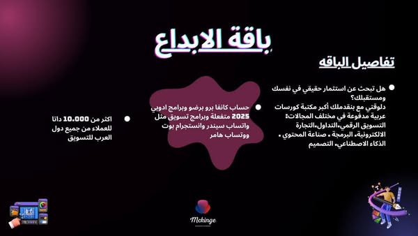 搜索关键词 Arabic online courses, Canva Pro free, Adobe software serials, WhatsApp marketing tools, customer data leads, digital marketing training, online learning platform, business creativity package, best online courses, learning and earning package优势 Largest Arabic Paid Course Library,Courses by Top Instructors,3-Year Canva Pro Account,Free Adobe Software with Activation Serials,Marketing Software (WhatsApp Sender, WhatsApp Hammer),Over 10,000 Customer Data Leads
