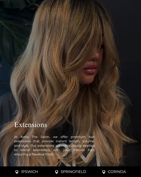 搜索关键词 koha salon, hair styling, blonde hair, seamless extensions, luxury hair treatments, Ipswich hair salon, Springfield hair salon, Corinda hair salon, personalized hair color, hair transformation优势 Customized hair styling,Expert stylists,High-quality hair treatments,Seamless hair extensions,Personalized blonding services