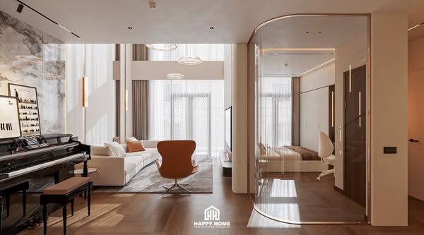 - Mỗi chi tiết nội thất đều được các Kiến trúc sư của Happy Home chạm khắc tỉ mỉ và tinh tế, thể hiện sự đầu tư chỉn chu đến từng góc nhỏ. Sự kết hợp hài hòa giữa sang trọng và hiện đại tạo nên một không gian sống đậm chất Luxury.