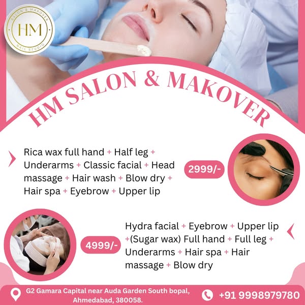 搜索关键词 Facial Ahmedabad, Spa Deals, HydraFacial Treatment, Premium Salon, Salon Offers Ahmedabad, HMGlowUp, Self Care Beauty, Ahmedabad Salon, Beauty Spa, Skin Care Ahmedabad优势 Spa Deals,Premium Salon Experience,Salon Combo Offer,HMGlowUp,SelfCare