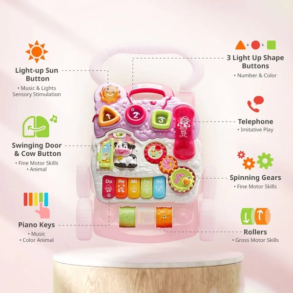 搜索关键词 vtech walker, baby walker, activity walker, baby toys, baby development, early learning toys, baby gifts, stroller toys, baby care products, interactive baby toys优势 Easy-to-remove activity panel,Light-up piano keys introduce shapes and numbers,Adjustable two-speed control,Interactive play with animals