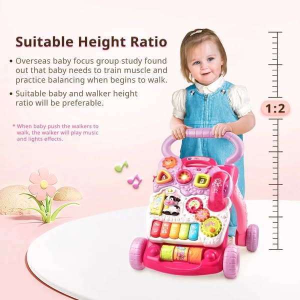 ✅ Adjustable two-speed control switch on the wheels allows walker to grow with your little one’s needs; magic sensor triggers sounds and melodies as your child walks
