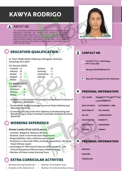 අපගේ 𝐂𝐕 𝐃𝐞𝐬𝐢𝐠𝐧 සේවාවේ විශේෂතා: