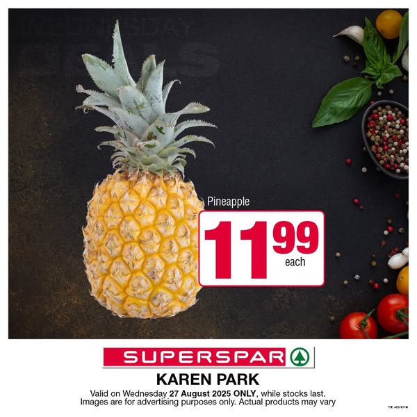 SPAR Karen Park is bringing you unbeatable freshness this Market Day on 27 August 2025. 🛒🍏🍅 Pick up the best in fruit and vegetable bargains, all in one convenient shop! While stocks last. Errors and omissions excepted (E&OE).