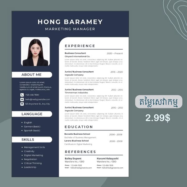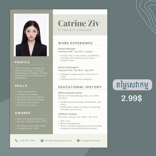 搜索关键词 CV design, modern CV, job interview, HR attention, professional resume, cv template khmer, get hired, career development, improve cv, attract recruiters优势 Modern and stylish CV templates,High standards of CV design,Attracts HR attention,Increases chances of interview