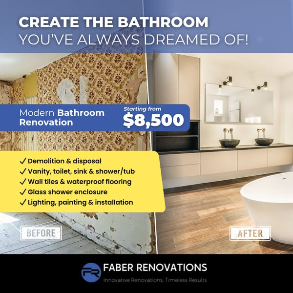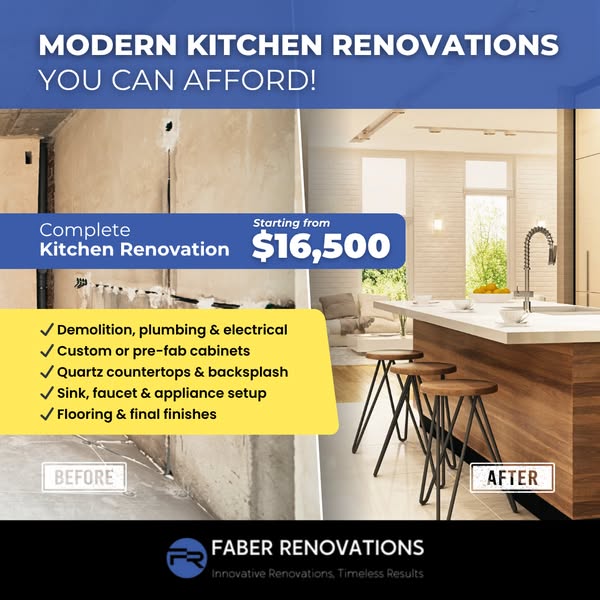 Your dream kitchen and bathroom are just a renovation away! Starting at only $16,500 for kitchens and $8,500 for bathrooms!