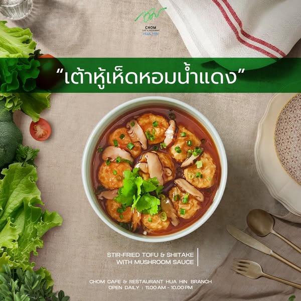 เปลี่ยนทุกมื้อธรรมดาให้กลายเป็นความสุขบนจานอาหาร จัดเต็มความอร่อยแบบไม่จำกัดแค่รสชาติ แต่ยังครบทั้งคุณค่า และความหลากหลาย กับเมนูมังสวิรัติ ที่ CHOM พร้อมเสิร์ฟให้คุณ ! 🫶