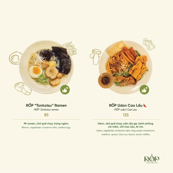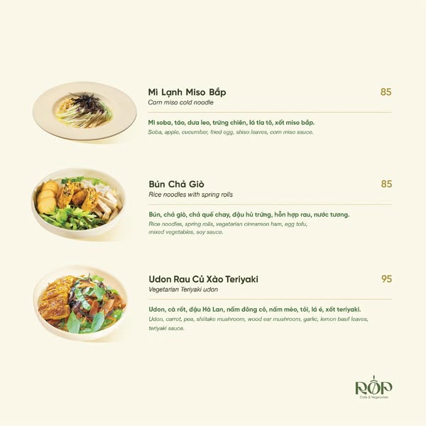 Với mong muốn mang đến cho bạn trải nghiệm ẩm thực chay fusion đa dạng, mỗi món ăn đều mang sự sáng tạo mới mà quan trọng nhất là ĂN CHAY PHẢI NGON, ăn hoài không chán. Nhớ ghé Rốp để thưởng thức những bất ngờ ngon miệng bạn nhé!