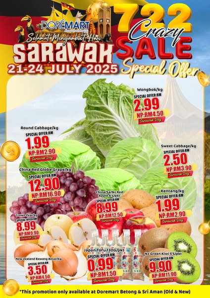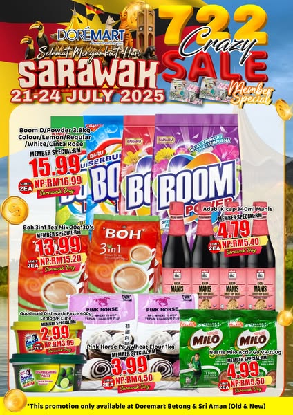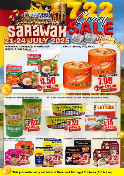 搜索关键词 Doremart Supermarket, 722 Crazy Sale, Sarawak promotion, daily necessities sale, member benefits, limited stock, happy hour, weekend promotion, Doremart Day, Supermarket Promotion优势 Crazy Sale promotion,Limited stock, first come first served,Member benefits: Happy Hour prices, weekday/weekend promotions, Doremart Day sales, exclusive events