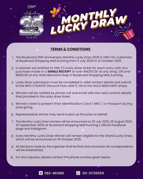 #Boulevard25thAnniversary #25thAnniversary #anniversary #monthlyluckydraw #prize #luckydraw #vouchers #spend #boulevardshoppingmallkuching