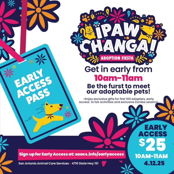 搜索关键词 pet adoption, animal shelter, Pawchanga 2025, adopt a pet, dog adoption, cat adoption, animal rescue, San Antonio animal care, spay neuter, pet event优势 Free Admission,Live Music & Performances,Early Access Perks,Adoption includes spay/neuter, vaccines, microchip,Special prizes for first 100 adopters,Pet-friendly trolley transportation,Variety of Activities