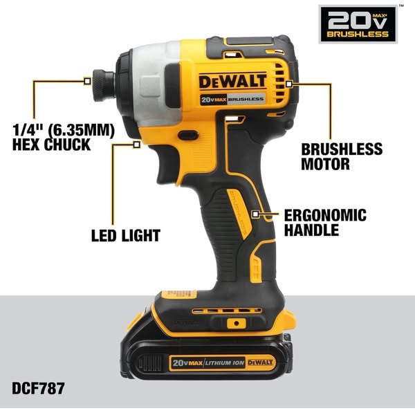 搜索关键词 DEWALT impact driver, 20V MAX driver, power tools, contractor tools, cordless driver, impact driver kit, tools for construction, tool and battery, tools with charger, DEWALT tools优势 Compact Design,High Torque (1500 in-lbs),Includes Battery, Charger, and Contractor Bag,1 Year Warranty