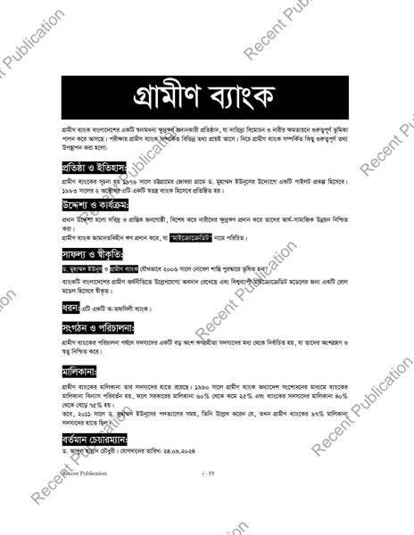 গ্রামীণ ব্যাংক নিয়োগ সহায়িকা ও সাজেশন