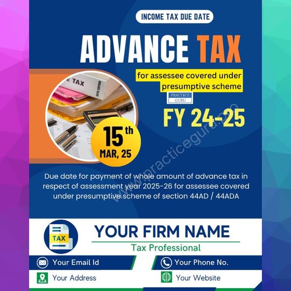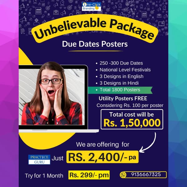 Boost your tax practice with ready-made, branded posters for Due Dates & Festivals, trusted by 3,000+ tax professionals. ✅ Affordable and easy to share ✅ Helps you stay visible and grow your practice ✅ Perfect for keeping clients informed & engaged Get yours today and start making a lasting impression! 📲 Contact us now!