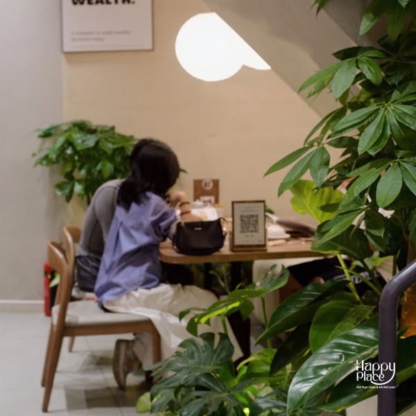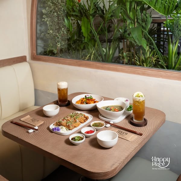 Nằm ngay giữa trung tâm quận 1 sầm uất, Happy Place như một góc nhỏ để bạn lắng lòng trong không gian xanh mát và tối giản, nơi sự thư thái len lỏi qua từng chi tiết. Những góc quán được chăm chút, để bạn tận hưởng từng món chay trong không khí an yên.