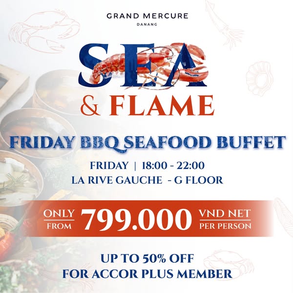 🦪🦀 "𝗦𝗲𝗮 & 𝗙𝗹𝗮𝗺𝗲 𝗙𝗲𝗮𝘀𝘁" - 𝗙𝗥𝗜𝗗𝗔𝗬 𝗕𝗕𝗤 𝗦𝗘𝗔𝗙𝗢𝗢𝗗 𝗕𝗨𝗙𝗙𝗘𝗧 at Grand Mercure Danang