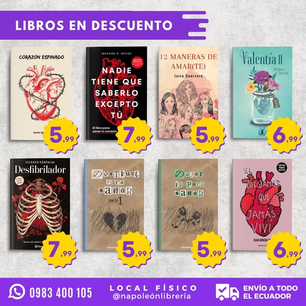 搜索关键词 libros Ecuador, libros en español, envío libros, comprar libros, libros Quito, mejores libros, libros Wattpad, literatura ecuatoriana, original book, country books优势 Envío a todo el país,Locales en Quito,Amplia selección de libros,Promoción disponible
