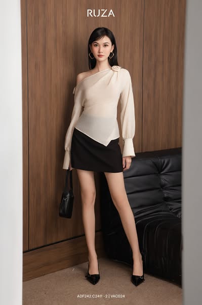 搜索关键词 áo lệch vai Ruza, váy Ruza, thoi trang Ruza, ao thiet ke, vay dep, fashion style, modern design, women's clothing, new collection, Vietnamese fashion优势 Thiết kế hiện đại và thanh lịch,Chất liệu mềm mại và thoải mái,Điểm nhấn hoa độc đáo,Phù hợp cho nhiều dịp