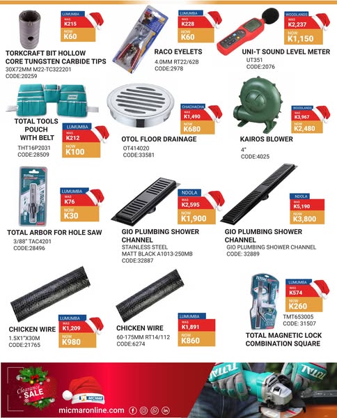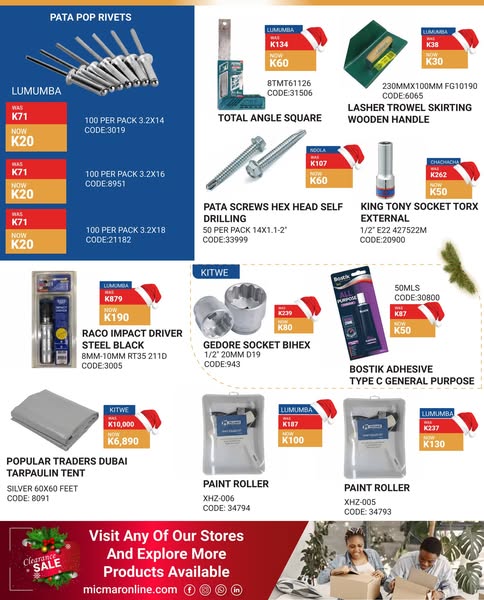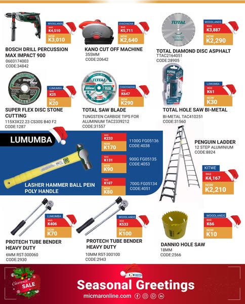 搜索关键词 Micmar hardware, clearance sale, December deals, discounts on hardware, Zambian hardware store, limited stock sale, shop now, visit us today, hardware promotion, save big优势 Amazing Discounts,Wide Variety of Products,Multiple Locations
