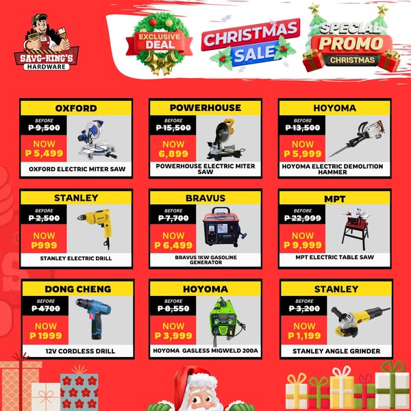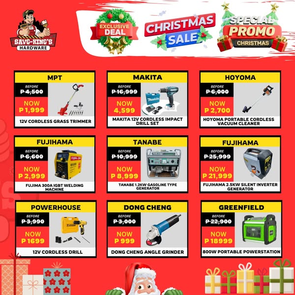搜索关键词 Christmas sale, hardware supplies, tool discounts, home improvement, limited time, Tuguegarao City, SAVG-KING'S, hardware deals, holiday shopping, December promotion优势 Unbelievable discounts,Best-selling items,Limited-time offer