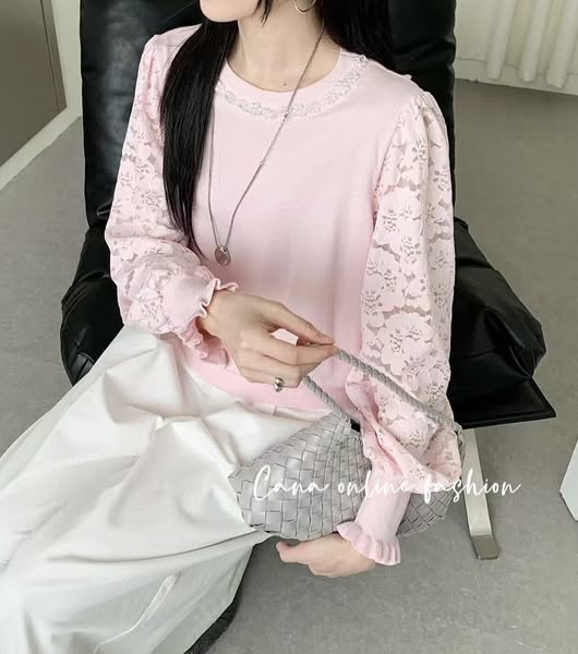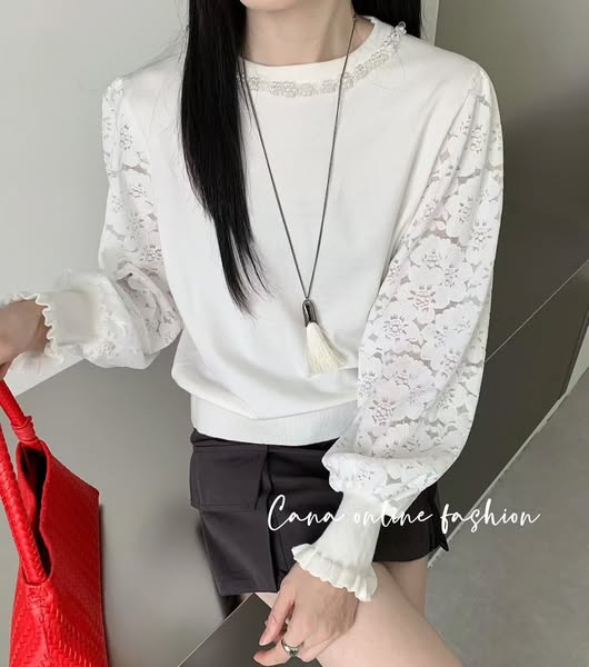 《 韓國珍珠領花花Lace手袖上衣🇰🇷 》