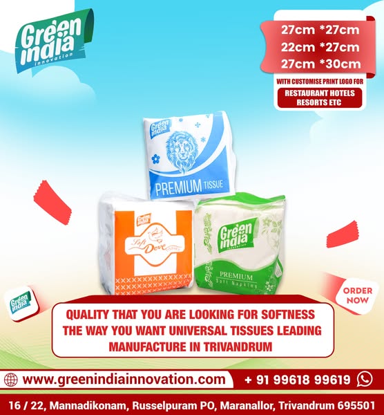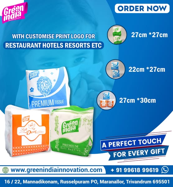 Napkins that care for your skin and your brand. Add your logo and stand out in style. Call or WhatsApp: +91 99618 99619