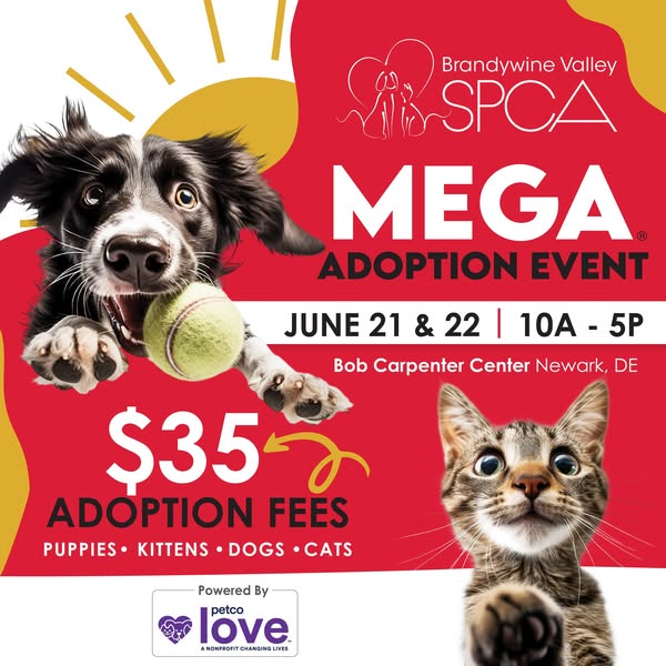 🐾 𝐑𝐄𝐌𝐈𝐍𝐃𝐄𝐑: Our adoption centers will be CLOSED TODAY until Monday, June 23. We will resume regular adoption center hours on Tuesday, June 24, after Mega. However, our PetSmart Everyday Adoption Center in Plymouth Meeting will be OPEN Friday (today), Saturday, and Sunday.