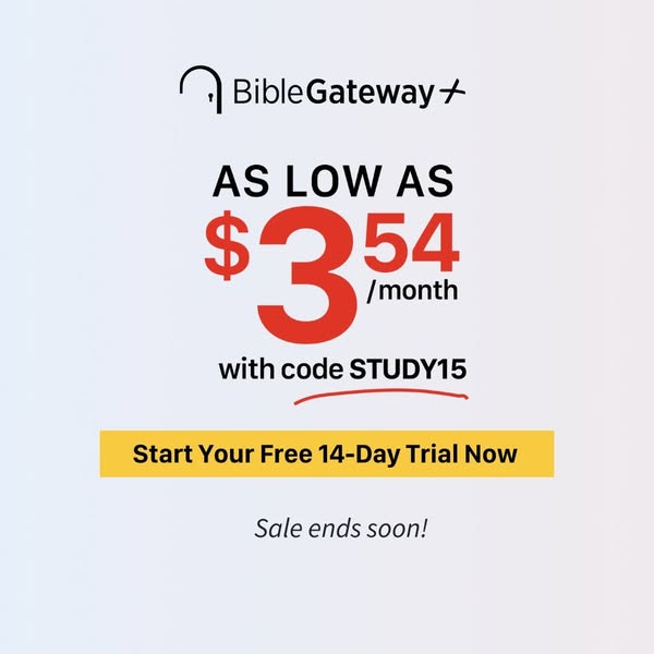 Access over $3,100 worth of Bible study resources for as low as $3.54 a month! Bible Gateway Plus gives you access to 70+ study tools, including study Bibles, commentaries, dictionaries and more. Study anywhere on any device with ease—whether you're preparing sermons, leading a group, or deepening your personal devotion. Simplify your study with top-notch tools at your fingertips. Unlock 15% off for life for a limited time only with code STUDY15. 🔗 START YOUR FREE TRIAL! 🔗