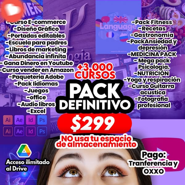 PRIMERO ACCEDES, PAGAS AL RECIBIR +3000 CURSOS POR 299 PESOS, 1 CENTAVO POR CURSO.