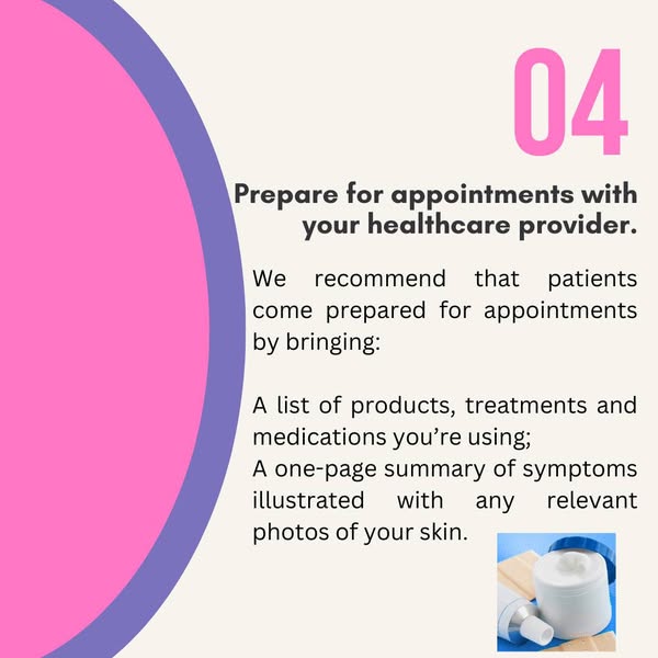 A one-page summary of symptoms illustrated with any relevant photos of your skin.