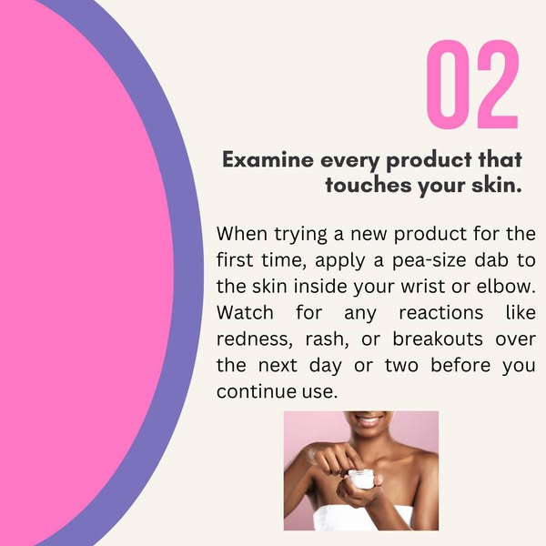 When trying a new product for the first time, apply a pea-size dab to the skin inside your wrist or elbow. Watch for any reactions like redness, rash, or breakouts over the next day or two before you continue use.