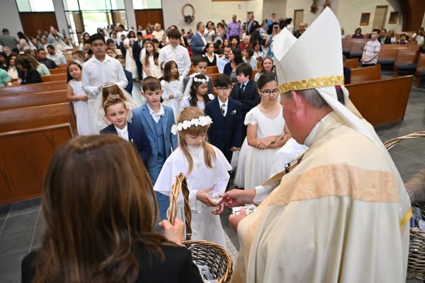 Bishop Kevin J. Sweeney gathered with first communicants from around the Paterson Diocese and their families for an afternoon of catechesis, adoration, and celebration on June 1. The event was held at St. Peter the Apostle Church in Parsippany.
