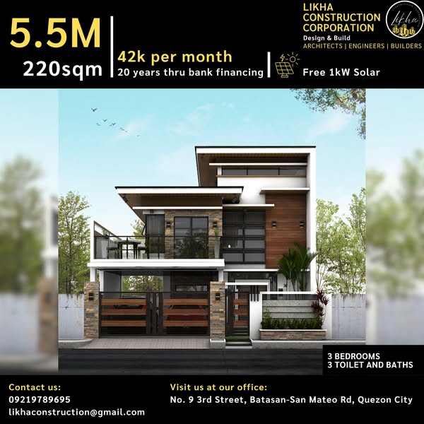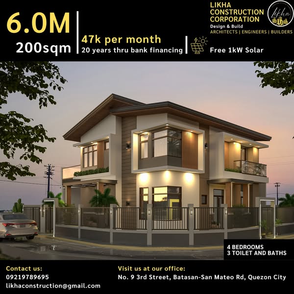搜索关键词 design and build Philippines, residential construction Quezon City, home loan assistance, PCAB licensed contractor, unlimited design revisions,solar panel installation, affordable home design, building permits assistance, architectural design services, Likha Construction优势 Comprehensive Design and Build Services,Unlimited Design Revisions,Bank Loan Assistance,Free 1kW Solar (with Construction Contract),PCAB Licensed Contractor